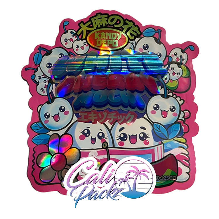 Serve luxe dessert vibes with the White Cherry Mochi 3.5g Mylar Bags by Kandy Depo. Designed for flavour-forward, candy/dessert-themed drops, these pouches blend elegant cherry-cream artwork with airtight, smell-proof performance—perfect for collector SKUs, collabs, and retail lines.